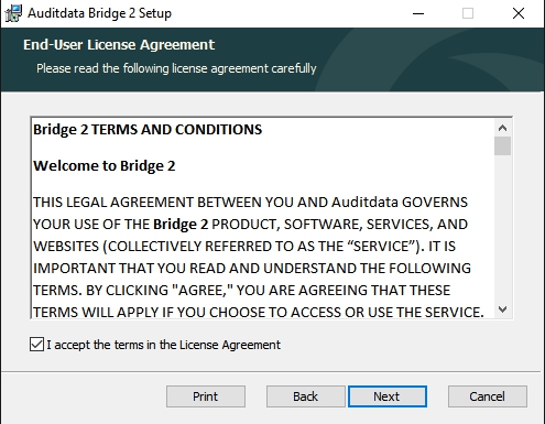 In case of both new clean installation or upgrading installation, once Bridge2 installer was launched, proceed further through the installation process as follows: