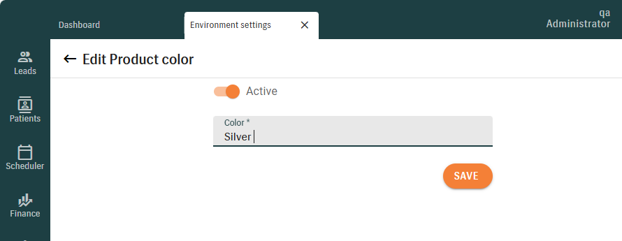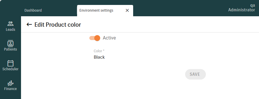 - Inactive colors remain visible for products that already use them but cannot be selected for new products or updates.