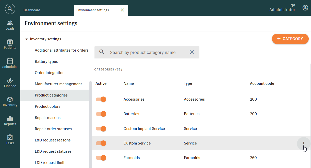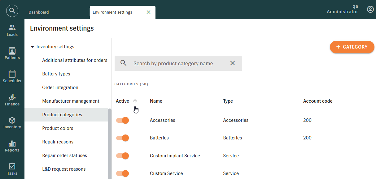 Administrators can create, edit, or delete custom product categories. The product categories page provides a single view to manage all categories. On this page, it is possible to: