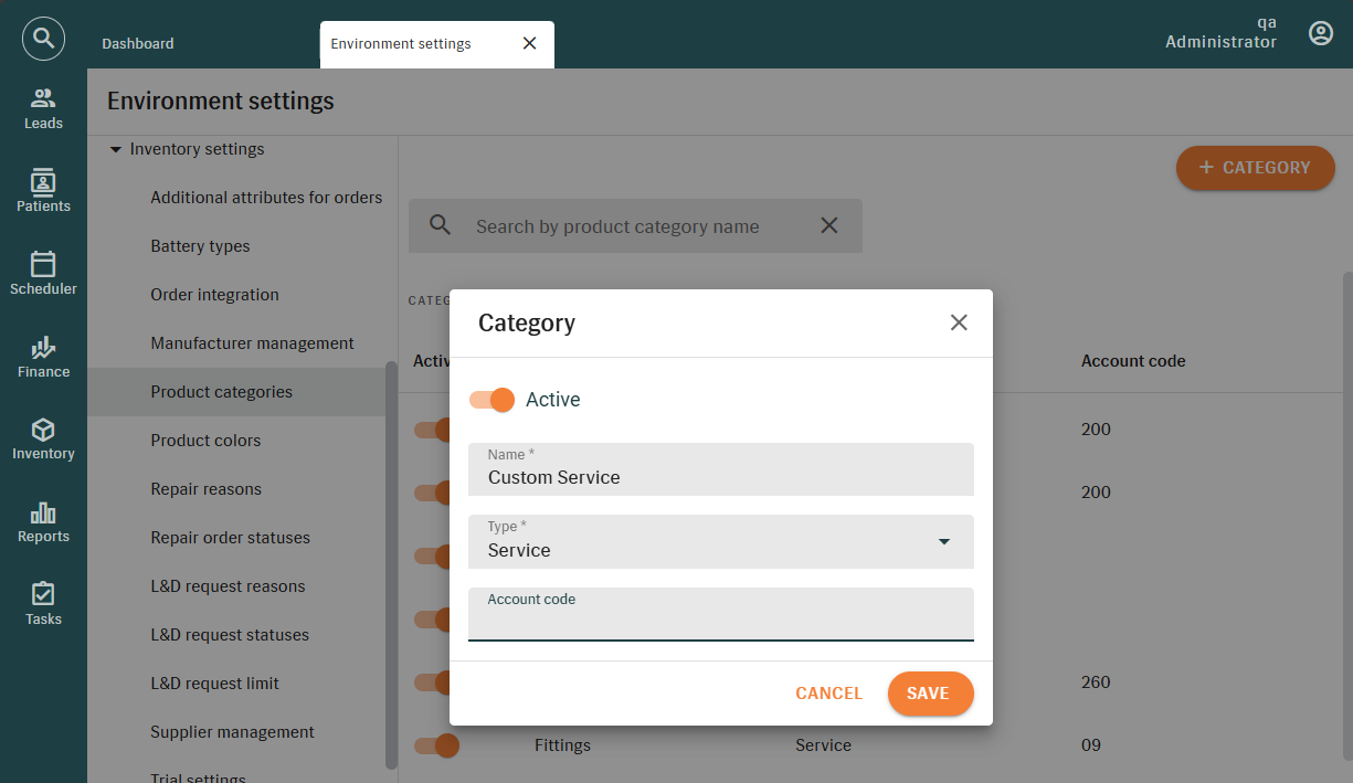 On this tab, users can create a list of product manufacturers. This list will be available as a dropdown on the ADD/EDIT PRODUCT screen in the Product catalog and Stock management. Any manufacturer with an 'active' state can be chosen and added to a product.
