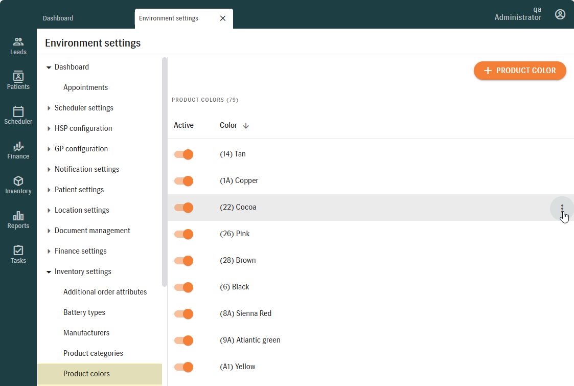 - Inactive colors can be applied only to existing products that already use them; they are no longer available for new selections.
