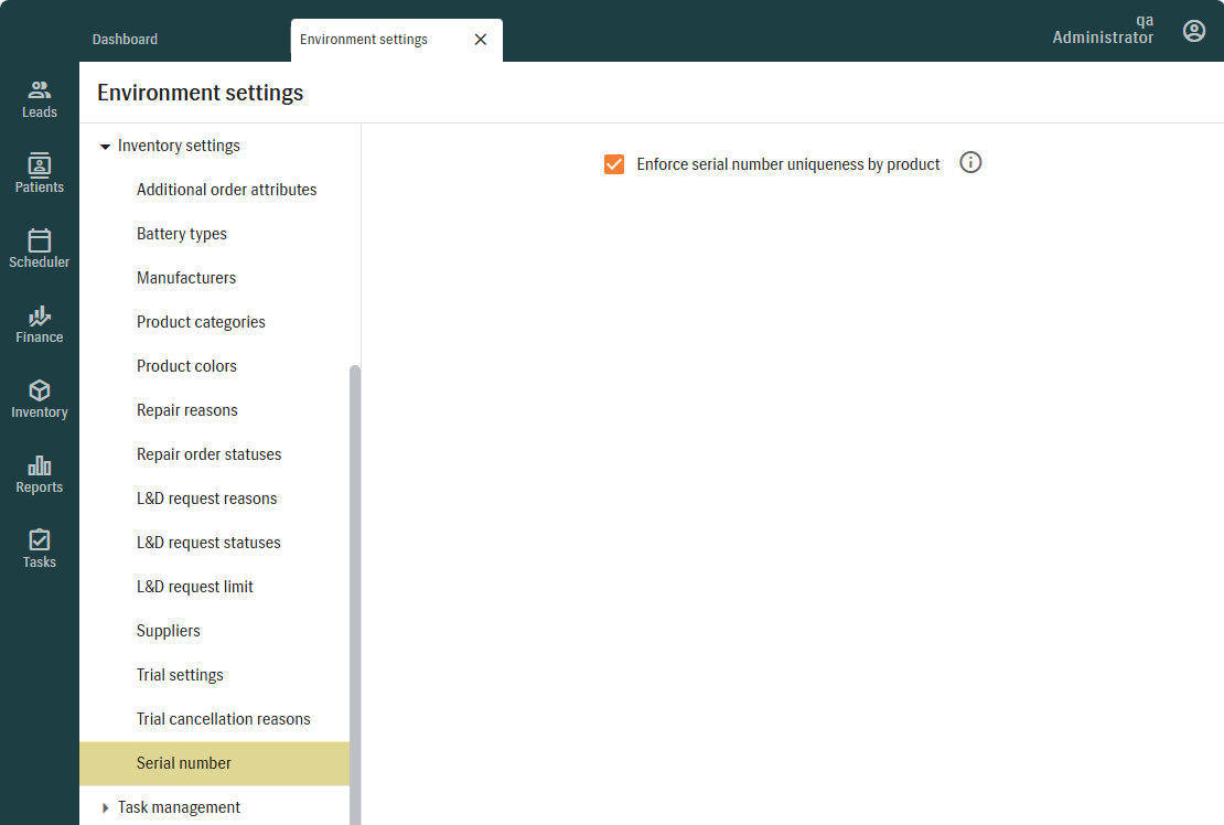 - Flexible Serial Number Uniqueness: Clinics can allow identical serial numbers across different products from the same manufacturer.