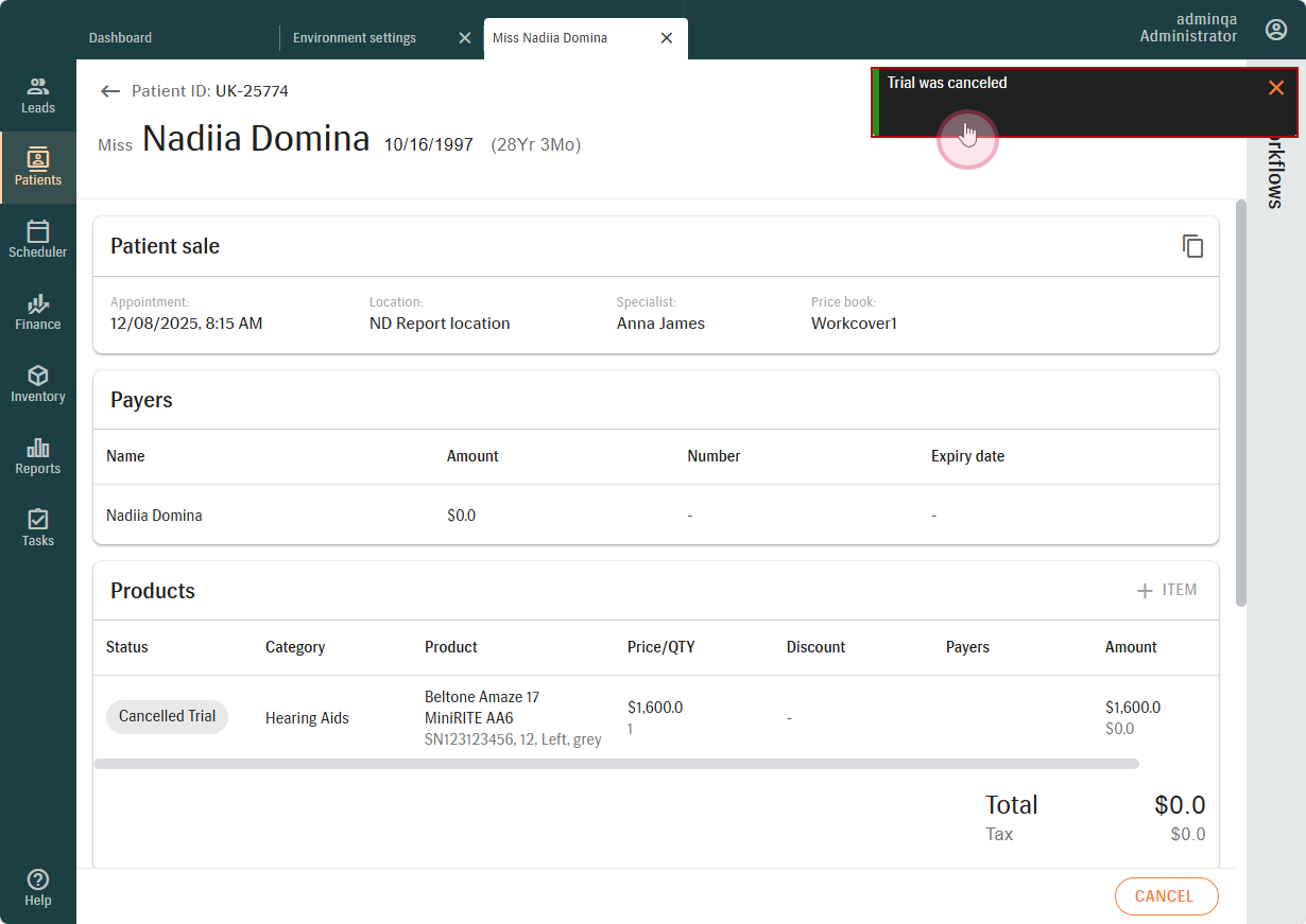 - Hearing Instrument Trials: US clinics can now start, manage, complete, and cancel serialized hearing aid trials within sales and quotes.