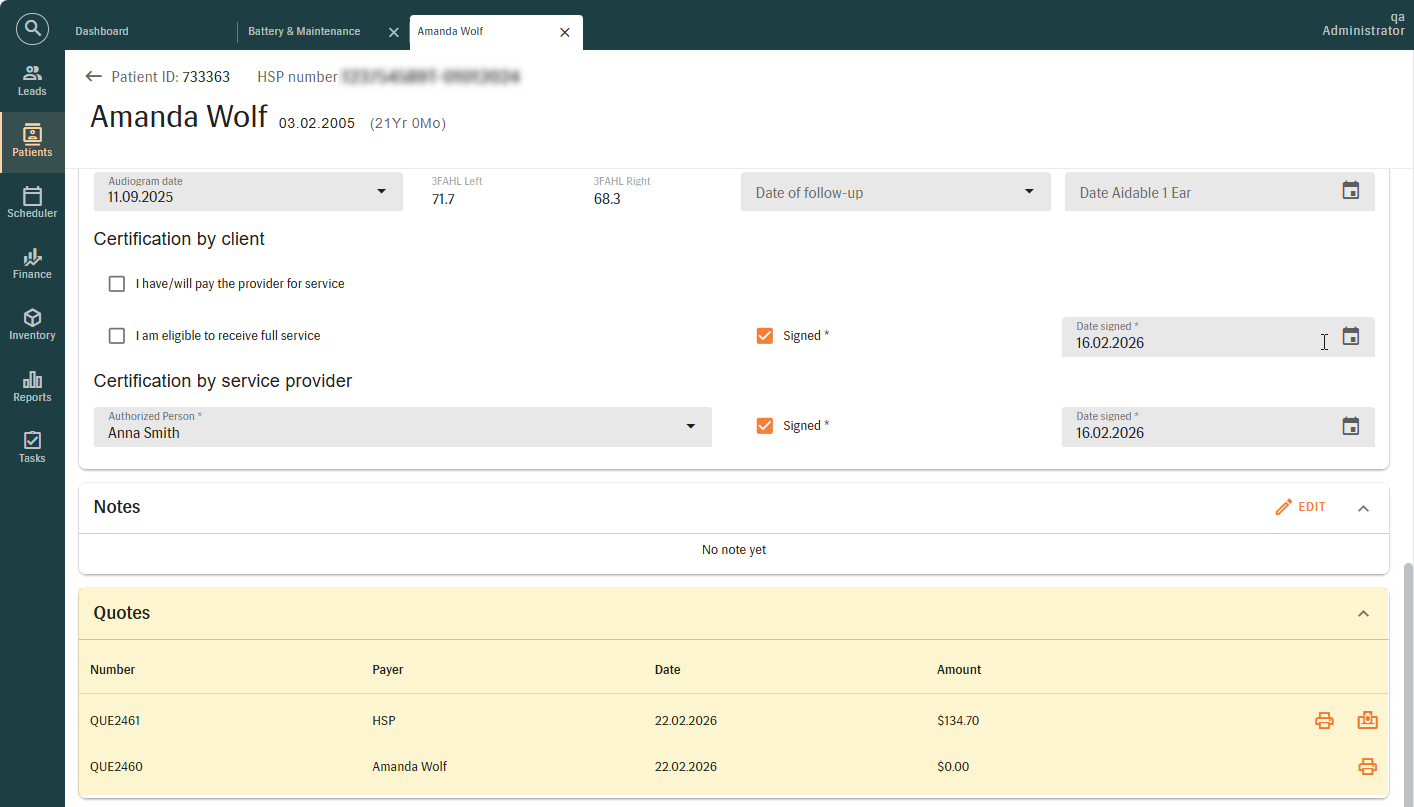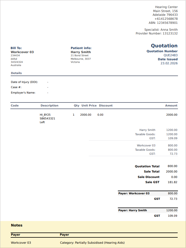 As of this release, notes entered during a sale are automatically included on generated invoices, quotes, and credit notes. This ensures that required reference information is consistently displayed on financial documents, enhances billing accuracy, reduces the need for manual adjustments, and supports compliance with external payer requirements.