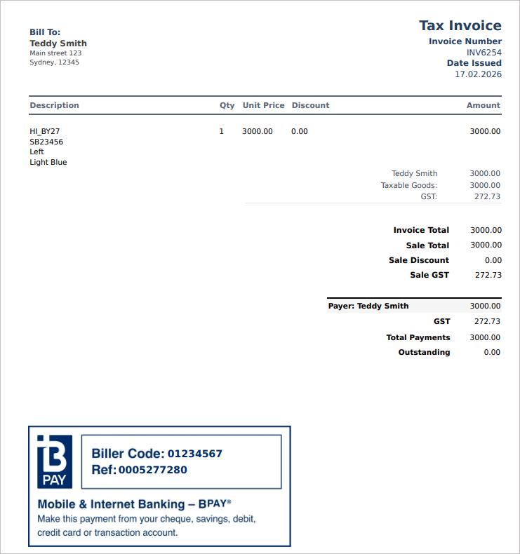 - Identical to standard templates, with an added BPAY section