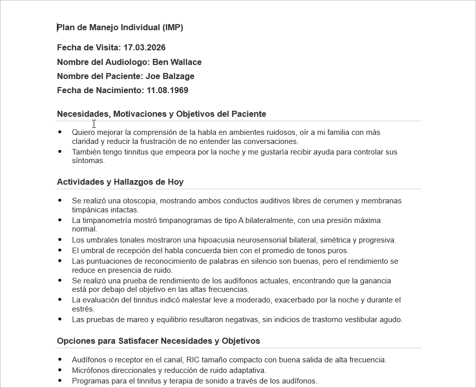 AI-generated Individual Management Plan (IMP) documents now support native-language output for Dutch and Spanish sessions: