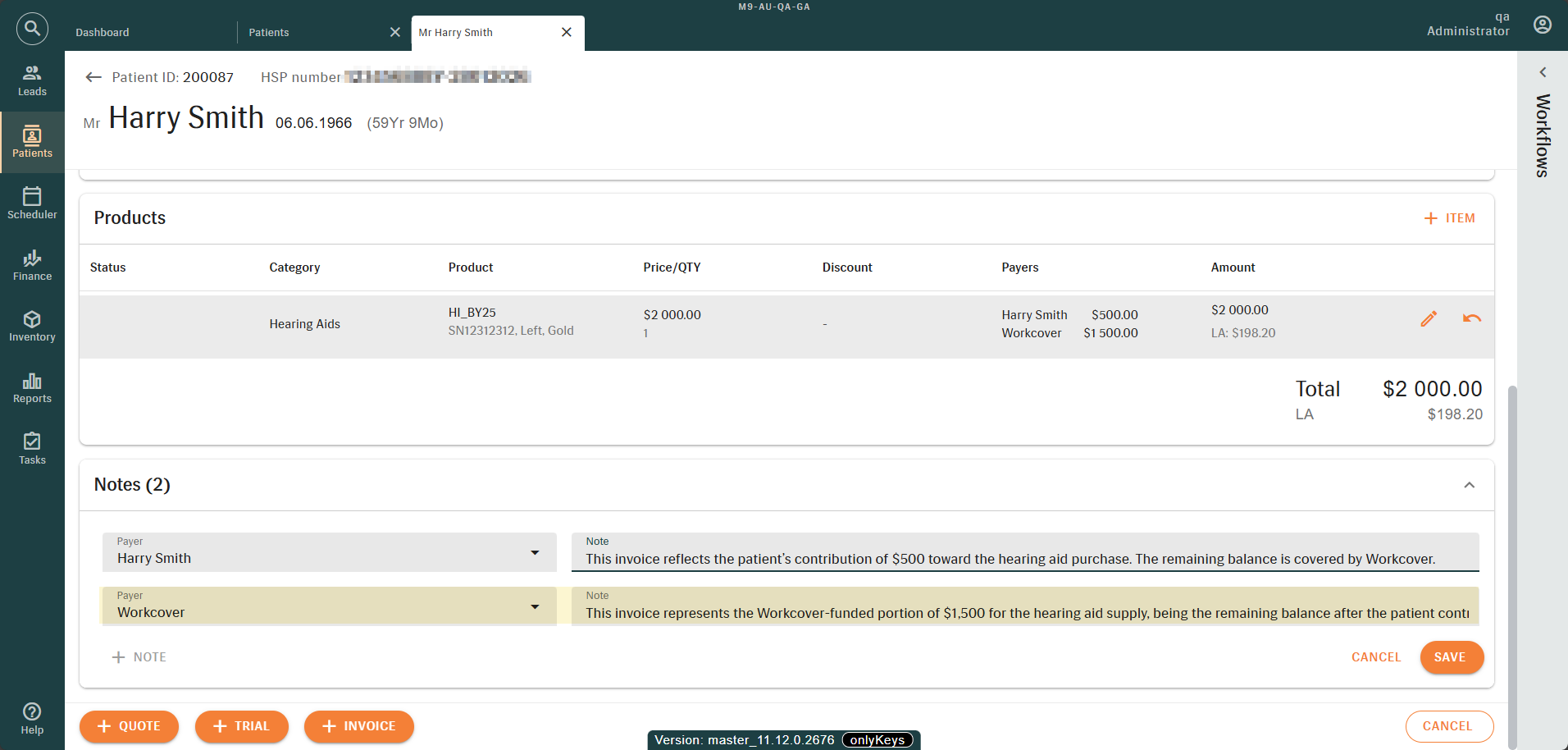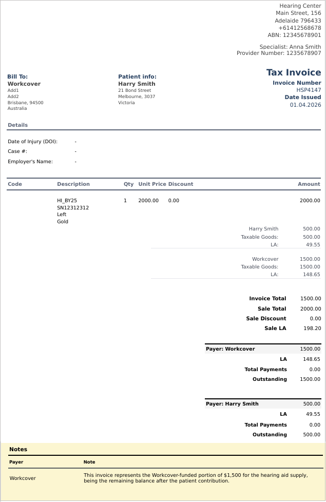 For DVA invoice printouts, only the notes for the patient payers are displayed.