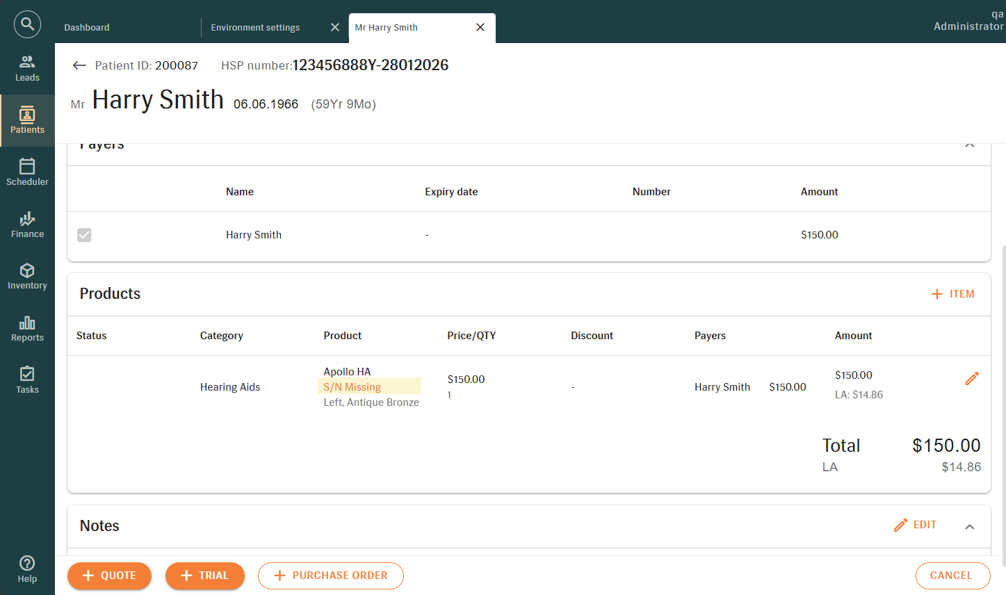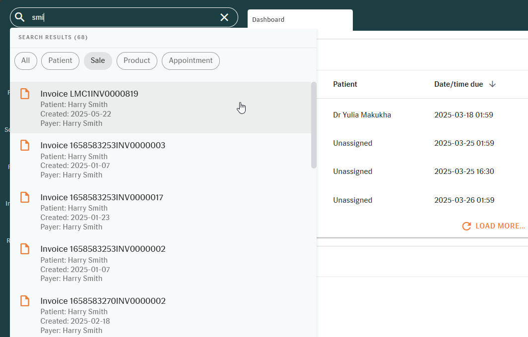 Find Patients, Appointments, Invoices, and Serial Numbers from a single search bar.