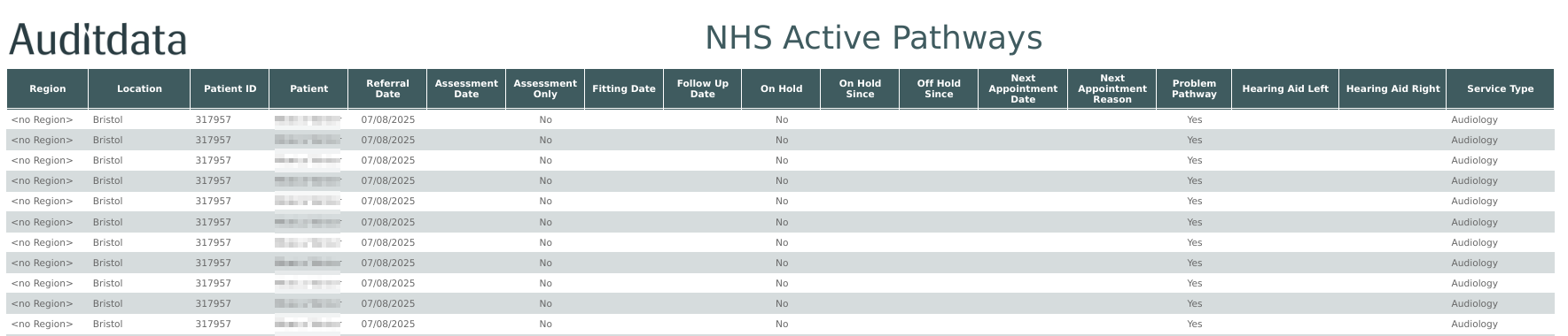 Track active NHS patient pathways, identify delays, and flag potential referral issues.