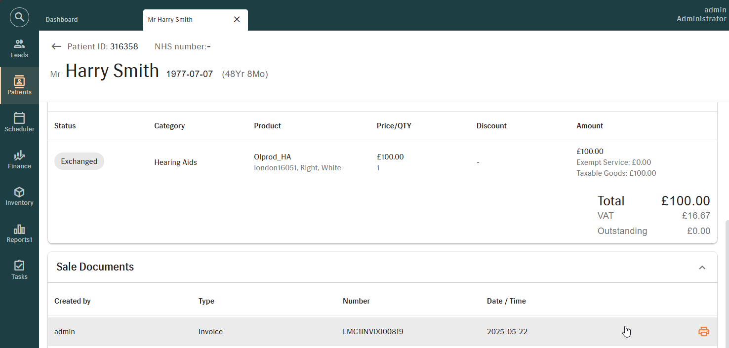 Patients > Patient sale