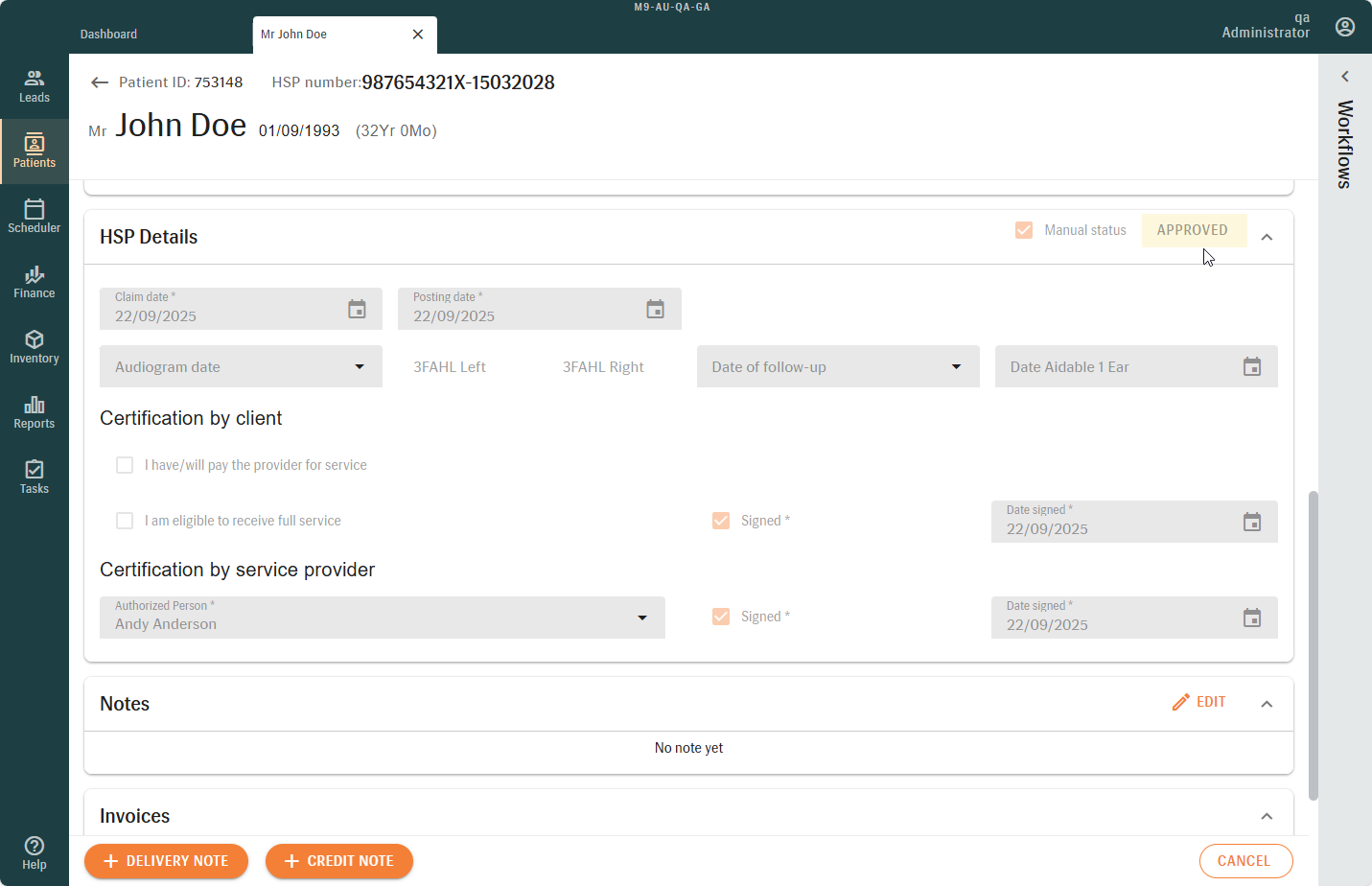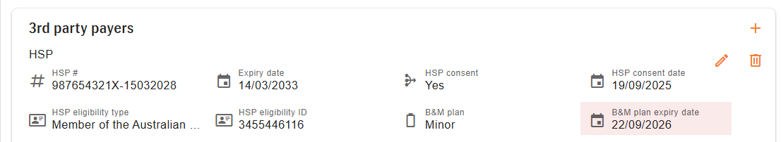 This feature is intended exclusively for HSP transfer patients in Australia. The values must be obtained directly from the HSP Portal and not entered arbitrarily to ensure compliance.