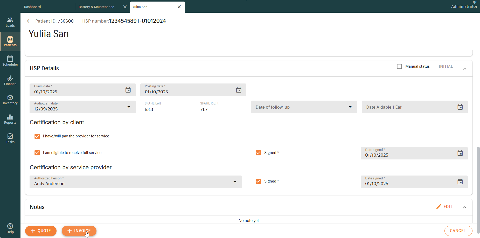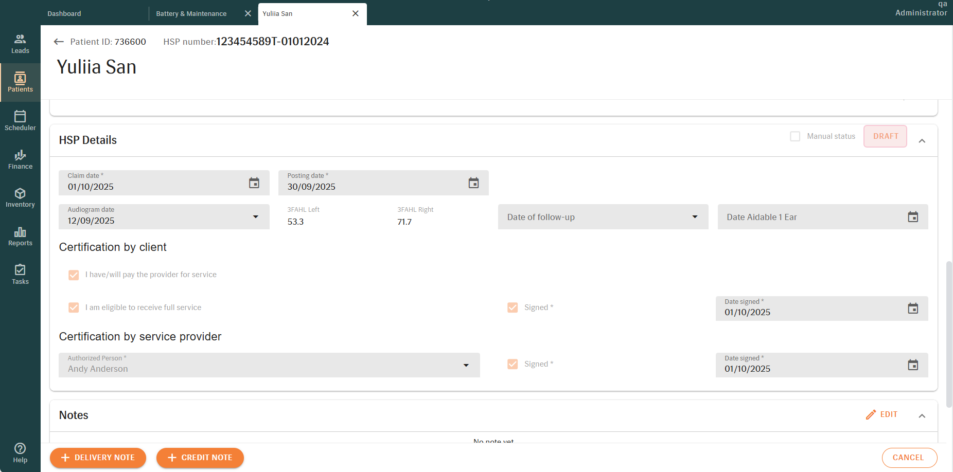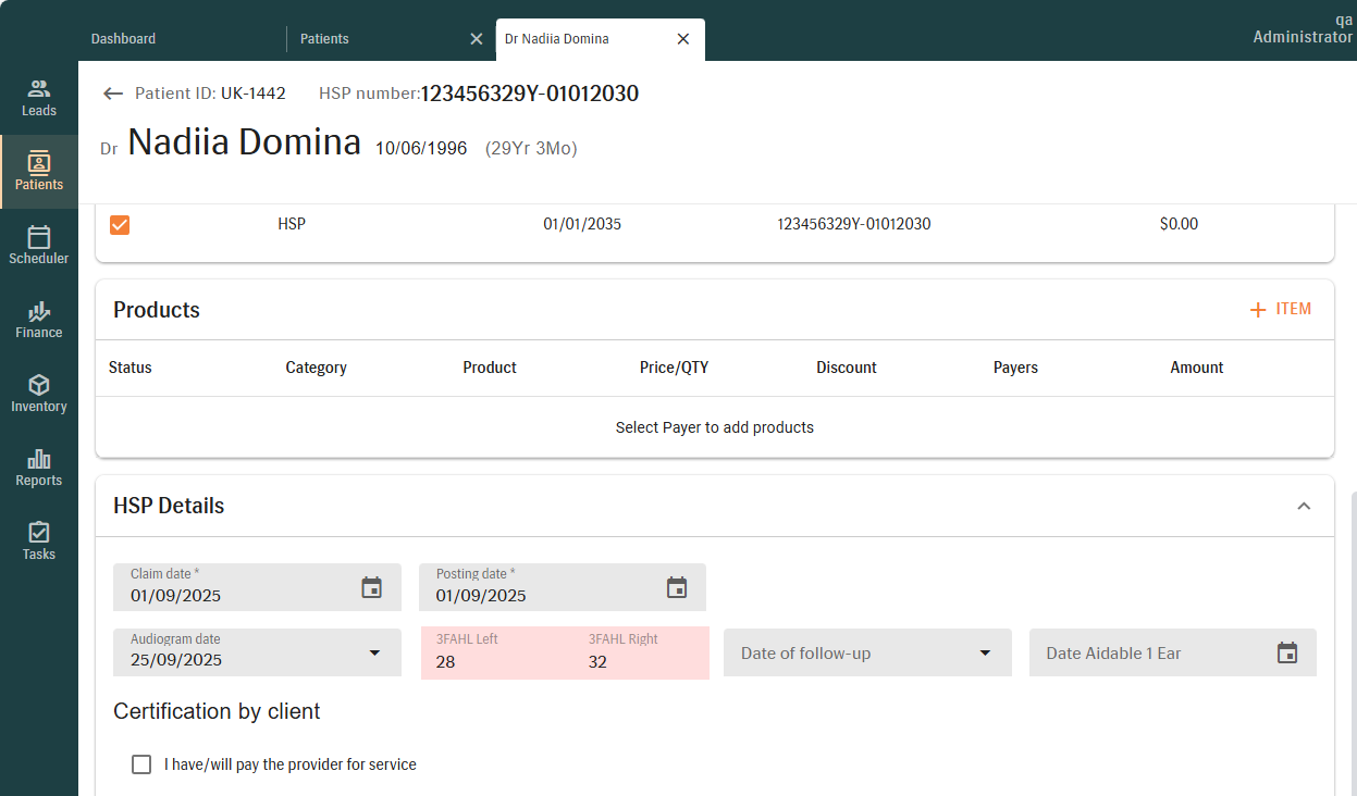 - Manual 3FAHL entry: Audiologists can now manually record Three-Frequency Average Hearing Level values in patient records, supporting HSP sales even when full audiograms are unavailable.