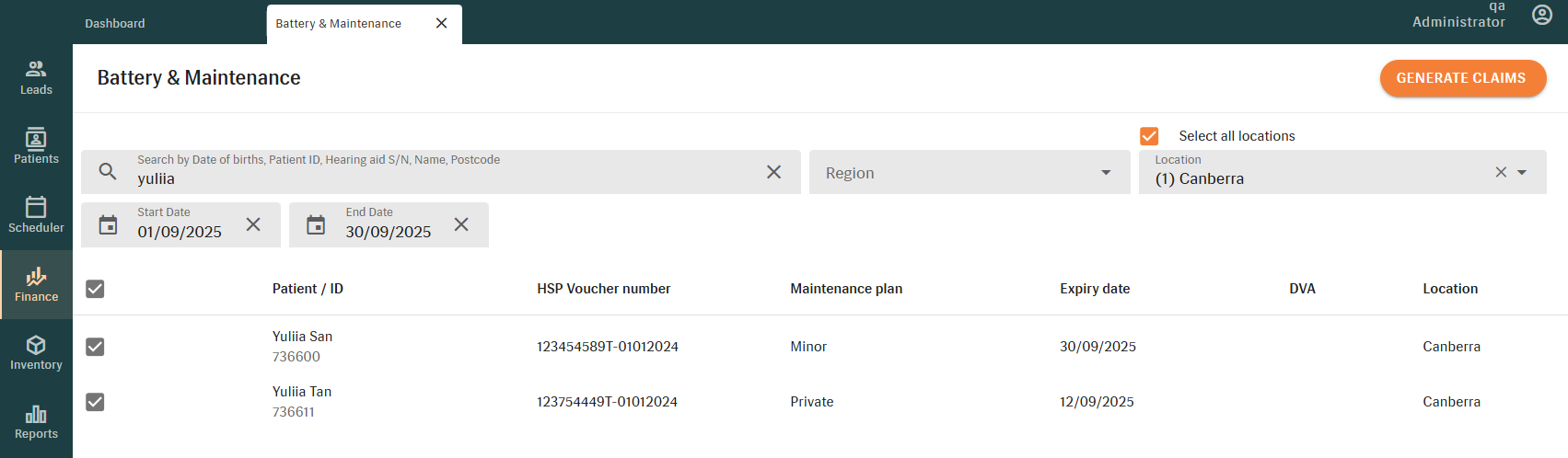 This feature introduces the ability to generate and submit Battery & Maintenance (B&M) claims in bulk for eligible HSP clients — even when no appointment is recorded in the system. It ensures that patients, including those transferred from other providers, can continue receiving essential services like battery replacement and repairs without administrative barriers.