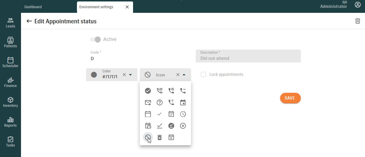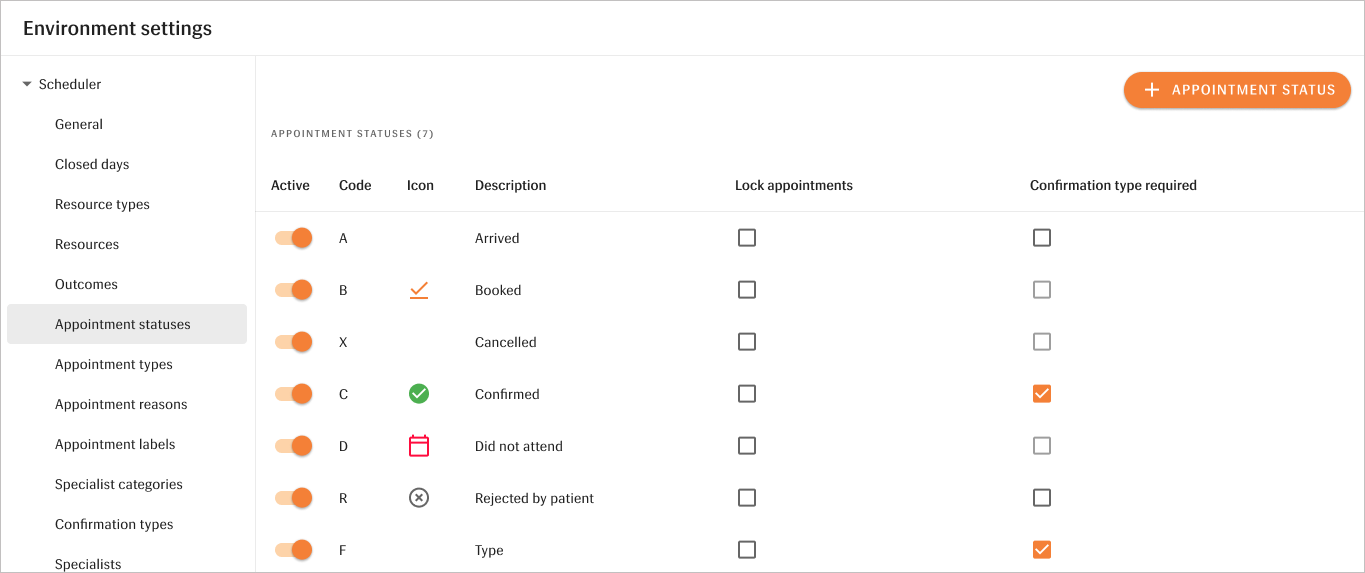 - Go to Environment Settings > Scheduler Settings > Appointment Statuses
