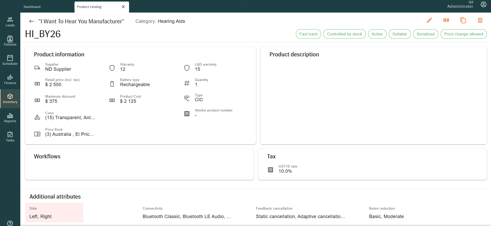 - The Side (Left/Right) can now be set as an additional attribute in the Product Catalog for applicable categories (hearing aids and earmolds).