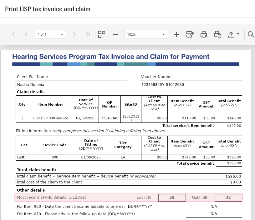 - When printing HSP tax invoice and claim documents from the HSP sale, the manually entered 3FAHL values will be included in the printed copy.