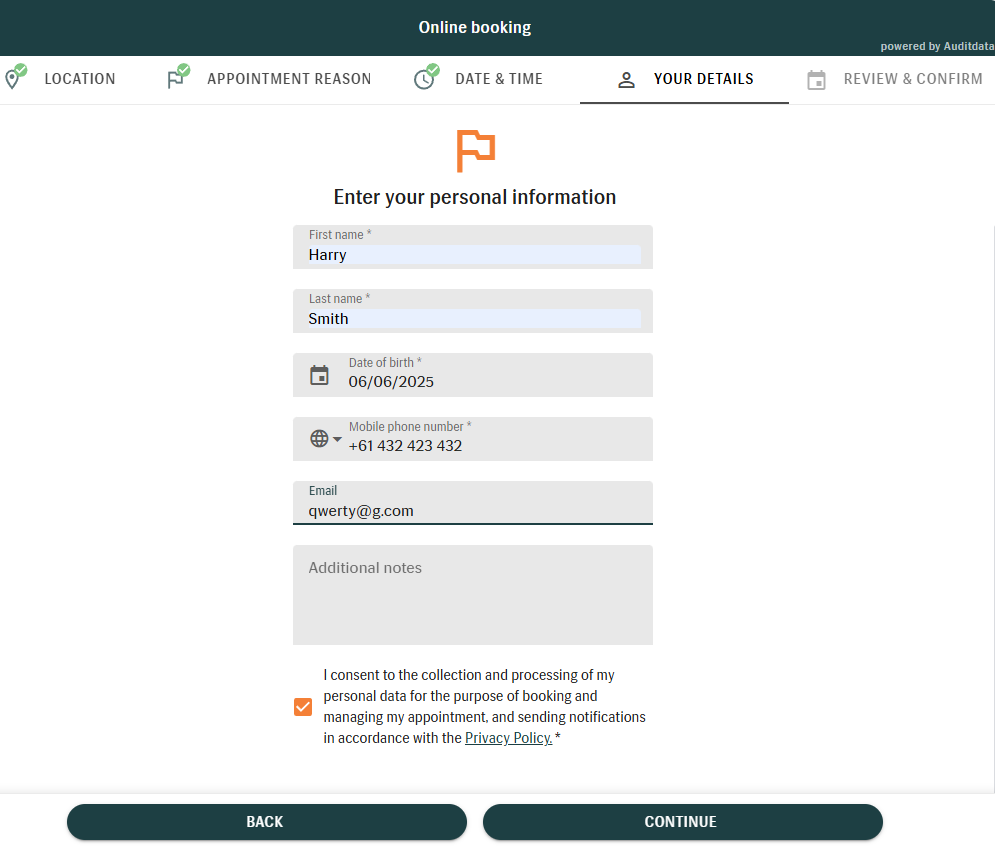 Auditdata Support activates the Online Booking Module, which is fully integrated with Manage. During setup, they configure time slot generation and customize options such as: