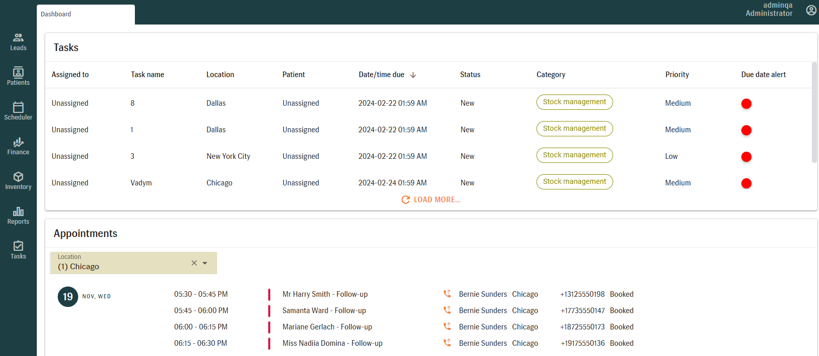 The Appointments section of the Dashboard has been improved to provide a more relevant and user-friendly view of upcoming appointments across multiple locations. These changes help users quickly access essential information without navigating to the Scheduler.