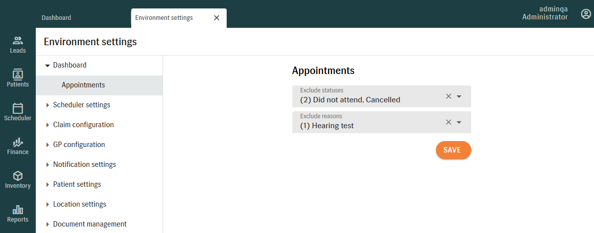 - Configurable exclusions: Environment settings allow authorized users to exclude specific appointment statuses and reasons from the Dashboard view. By default, appointments with a “Cancelled” status are excluded.