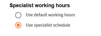 - 'Use specialist schedule' if the specialist's working hours differ from the default working hours