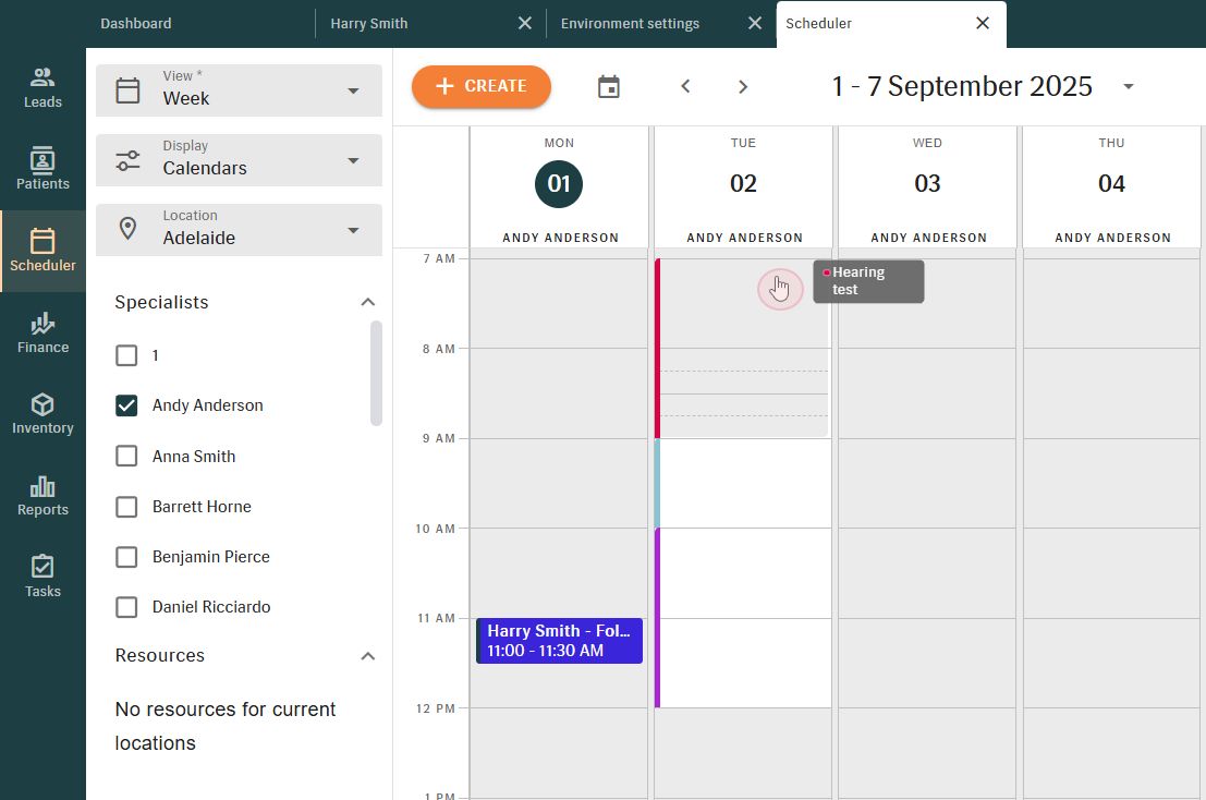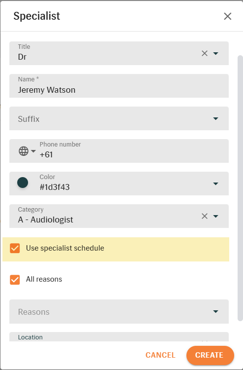 On this screen you can add a specialist and assign them to a chosen location. In Scheduler, all assigned specialists will be shown for that location.