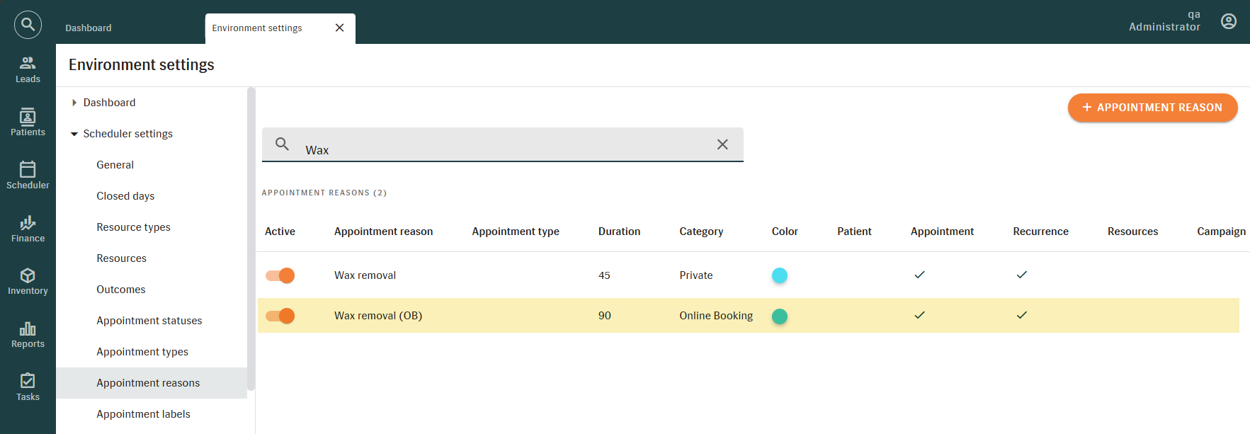 Even with ‘Booking for any reason’ enabled, the Scheduler grid will show only the primary appointment reasons assigned to a specialist. This helps users identify the main reasons while still allowing other bookings if needed.