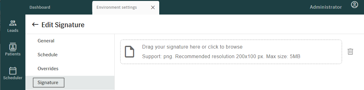 On the SIGNATURE tab, you can upload a PNG signature for use across patient documents, improving documentation workflows.